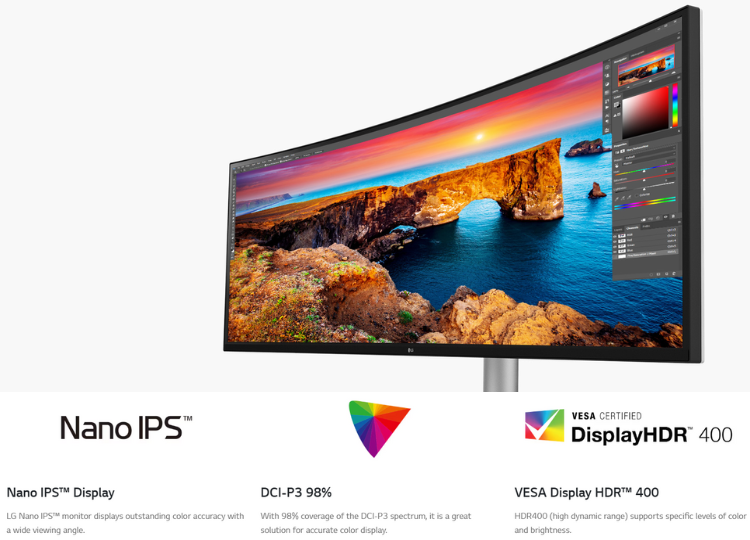 | Resolution | DQHD(5120 x 1400) | Picture Quality | VESA DisplayHDR™ 1000, DCI-P3 98% (Typ.) | |||